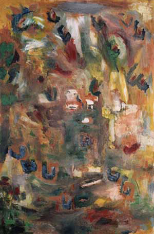 Dorf am Hang, Öl auf Baumwolle, 1998, 80 x 120