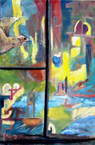 Draußen, Öl / Mischtechnik auf Baumwolle, 1998, 80 x 100